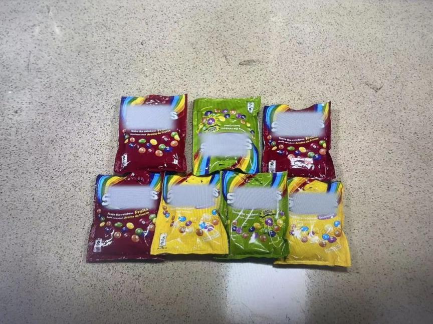 当日,深圳邮局海关关员在对转运货物开展监管时,发现一票包裹机检图像异常。经开箱查验,海关关员发现其中7包糖果外包装破旧,且封口处有二次包装痕迹。结合机检图像及实货情况,海关关员综合分析认为该包裹有藏毒风险。经开拆糖果外包装,发现片状颗粒一批,与包装袋上糖果特征明显不符。经试剂检测,该批片状颗粒呈摇头丸阳性反应。后经专业机构鉴定,在该批片状颗粒中检出摇头丸成分。目前,该案件已移交海关缉私部门处理。
