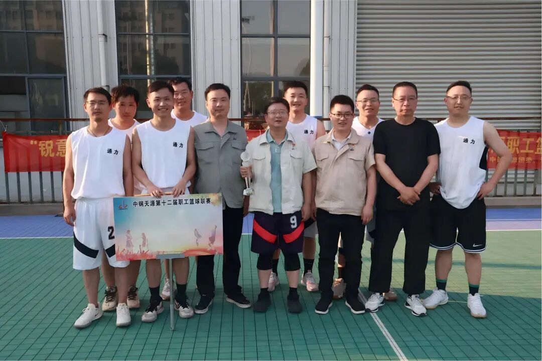 图为通力磁材厂篮球队取得中钢天源职工篮球联赛两连冠现场合影